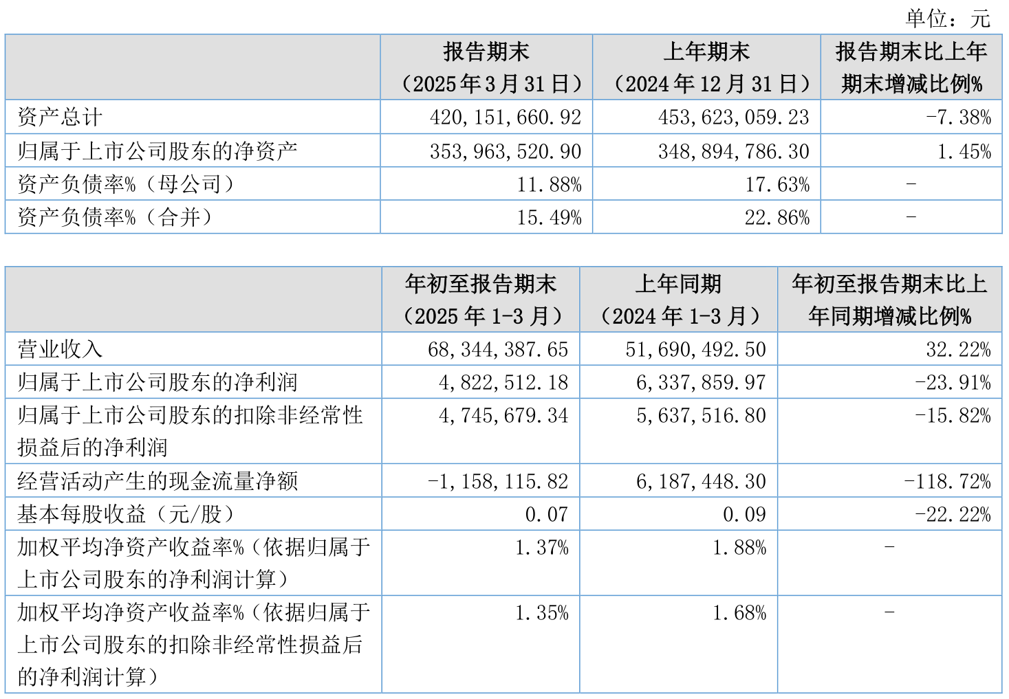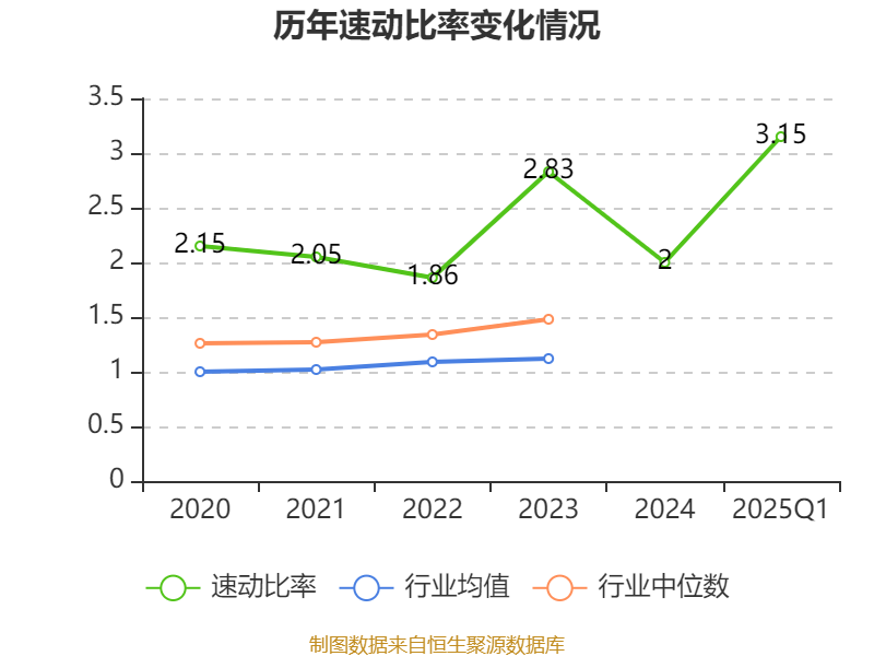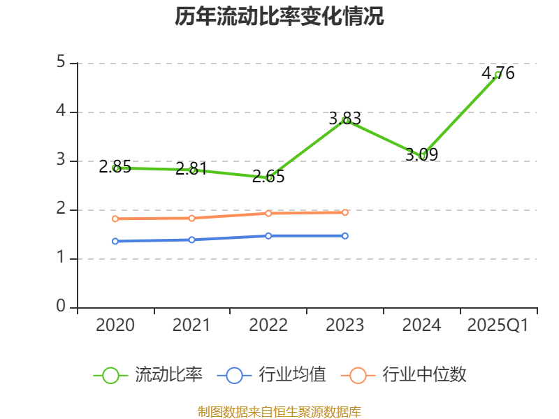 2025年第一季度,公司流动比率为4.76,速动比率为3.15。