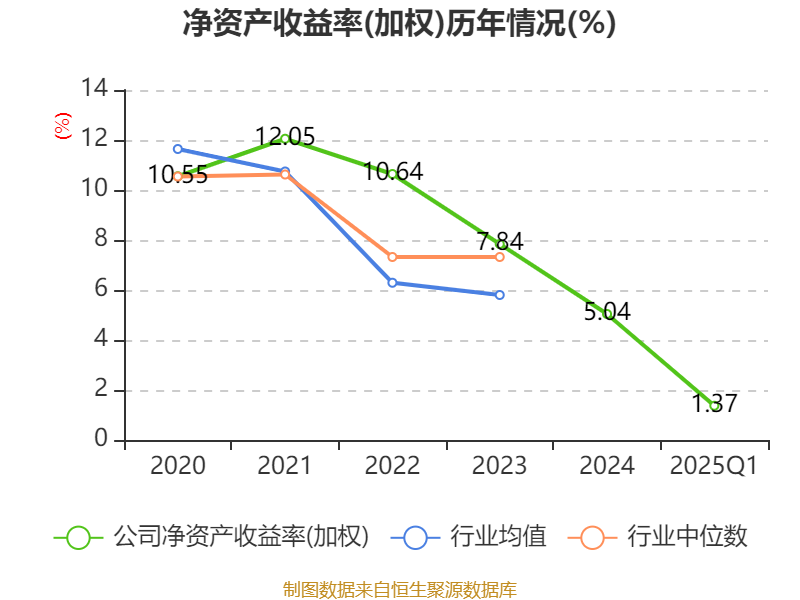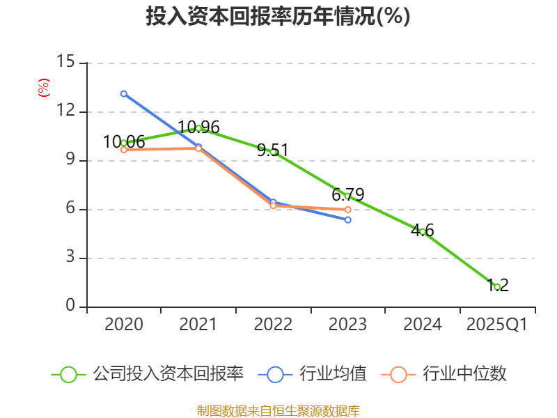 盈利能力方面, 2025年一季度公司加权平均净资产收益率为1.37%,同比下降0.51个百分点。公司2025年第一季度投入资本回报率为1.2%,较上年同期下降0.57个百分点。
