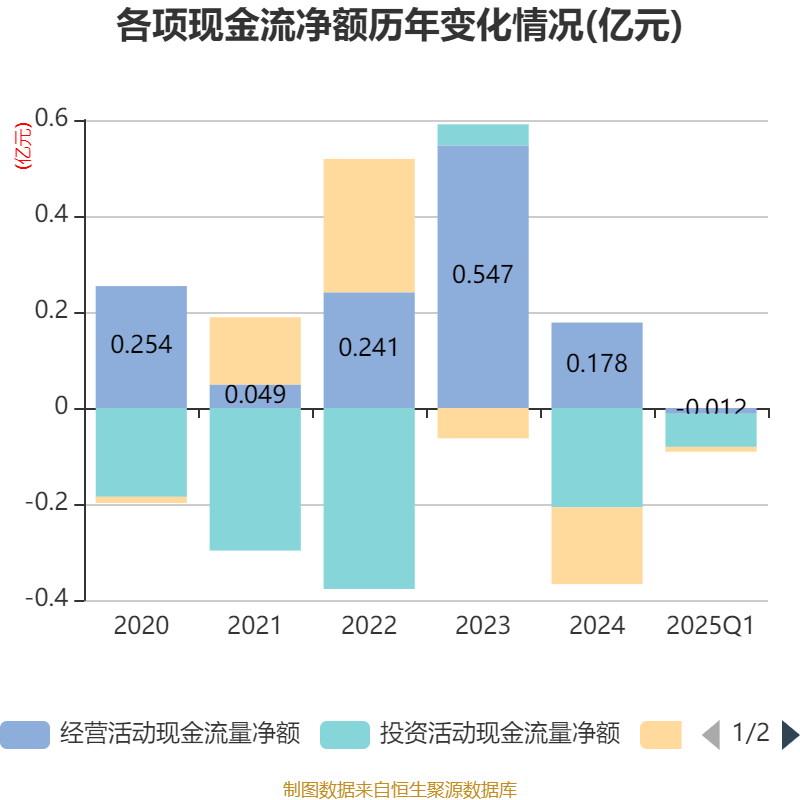 截至2025年一季度末融易盈,公司经营活动现金流净额为-115.81万元,同比减少734.56万元;筹资活动现金流净额-104.59万元,同比增加426.33万元;投资活动现金流净额-694.28万元,上年同期为266.27万元。